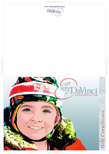 Your gift certificate will be shipped to you. This one of a kind certificate (with folded greeting card style, size 5"x7") is printed on fine art paper and enclosed in a matching envelope.